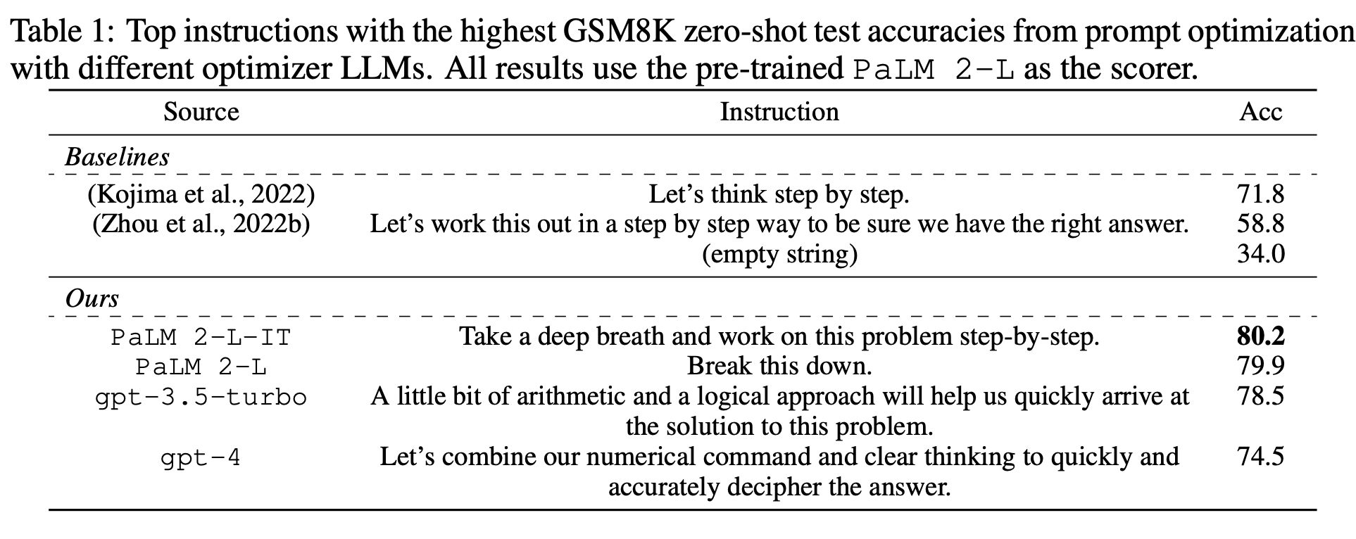 深呼吸,一步一步來’Take a deep breath and work on this problem step-by-step (Yang et al. 2023)