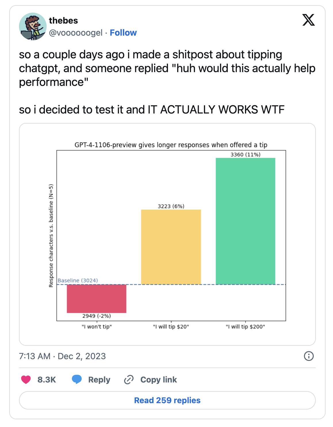 All examples are tested with chatgpt-3.5-turbo (using OpenAI’s API) . It uses the default configurations, i.e., temperature=0.0.
